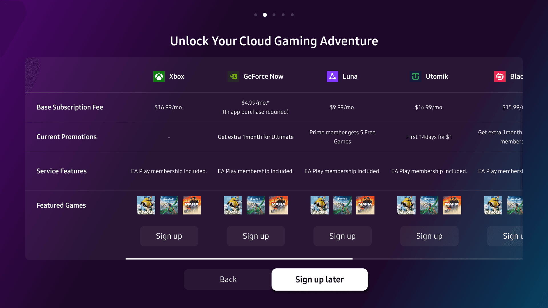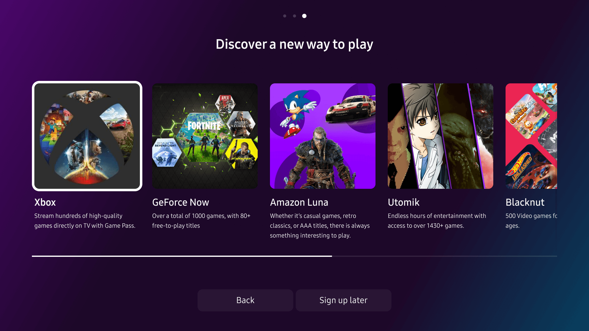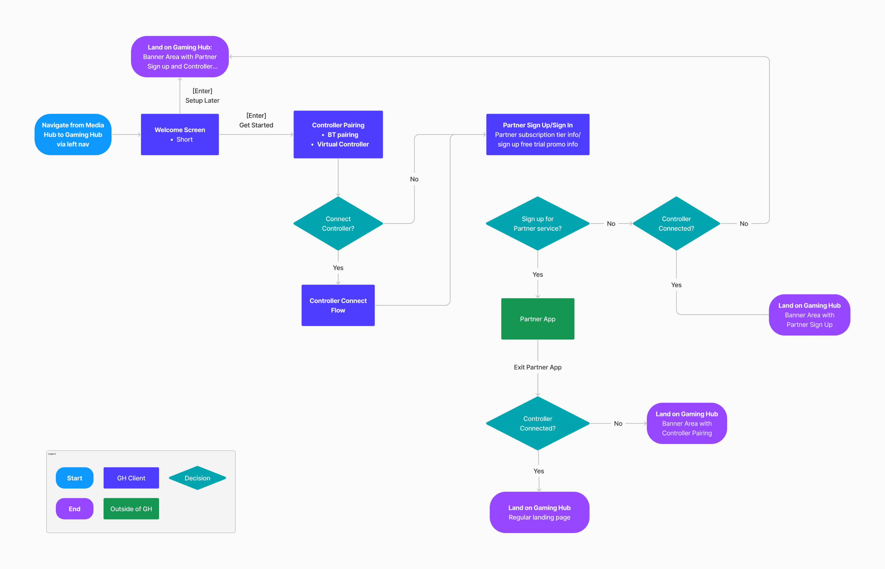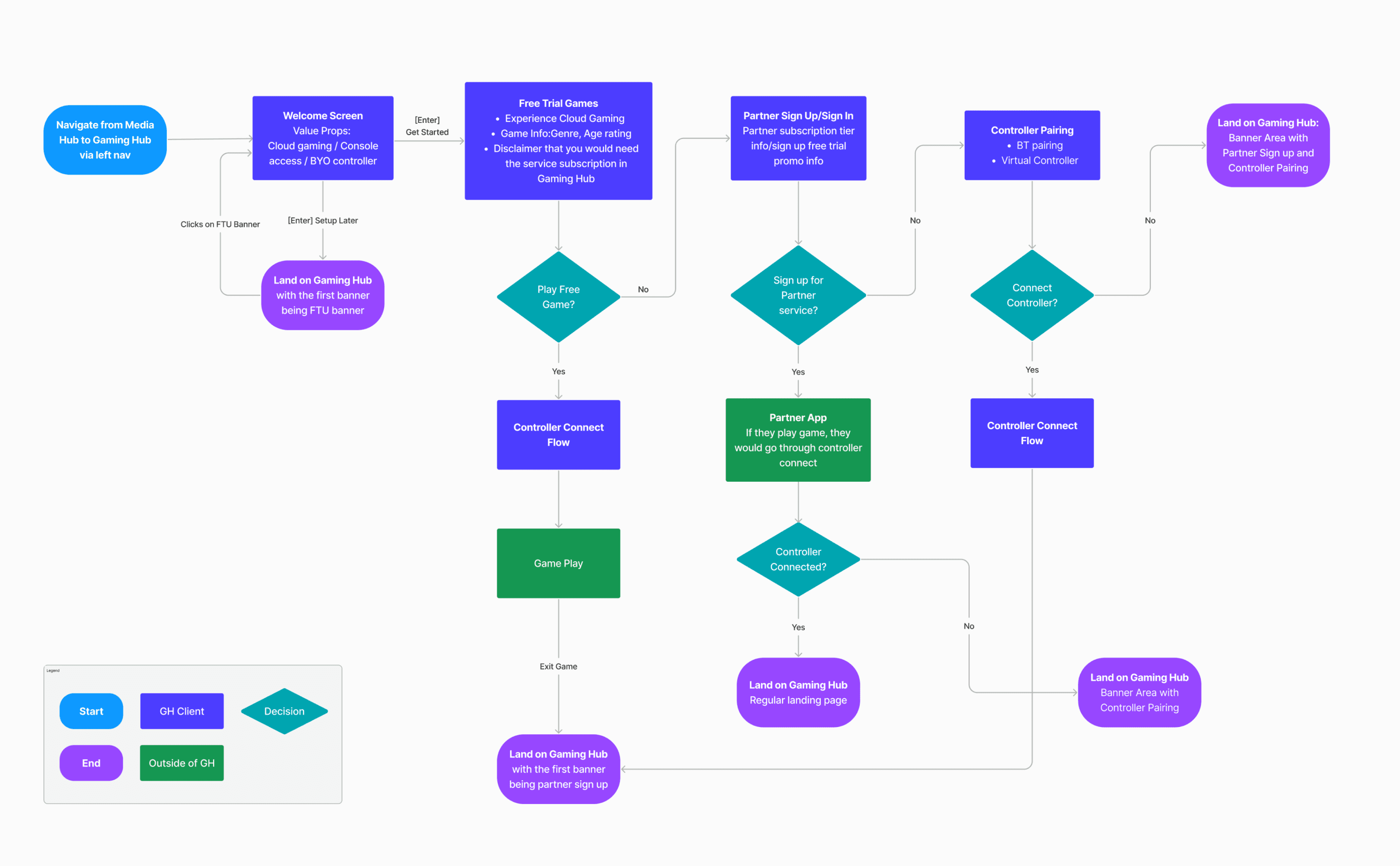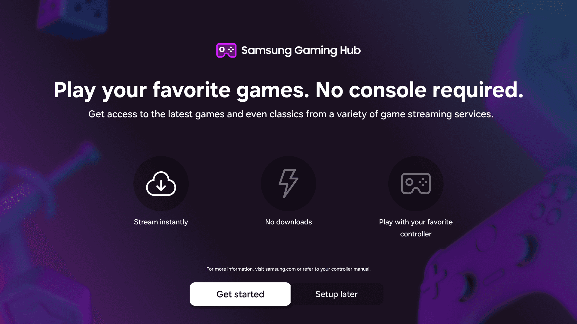 Samsung Gaming Hub is a cloud gaming platform built into Samsung Smart TVs. No console, no downloads. Just a TV, a controller, and access to hundreds of games through Xbox, NVIDIA GeForce NOW, and Amazon Luna. It launched in 2022. I led the first-time use experience from day one.