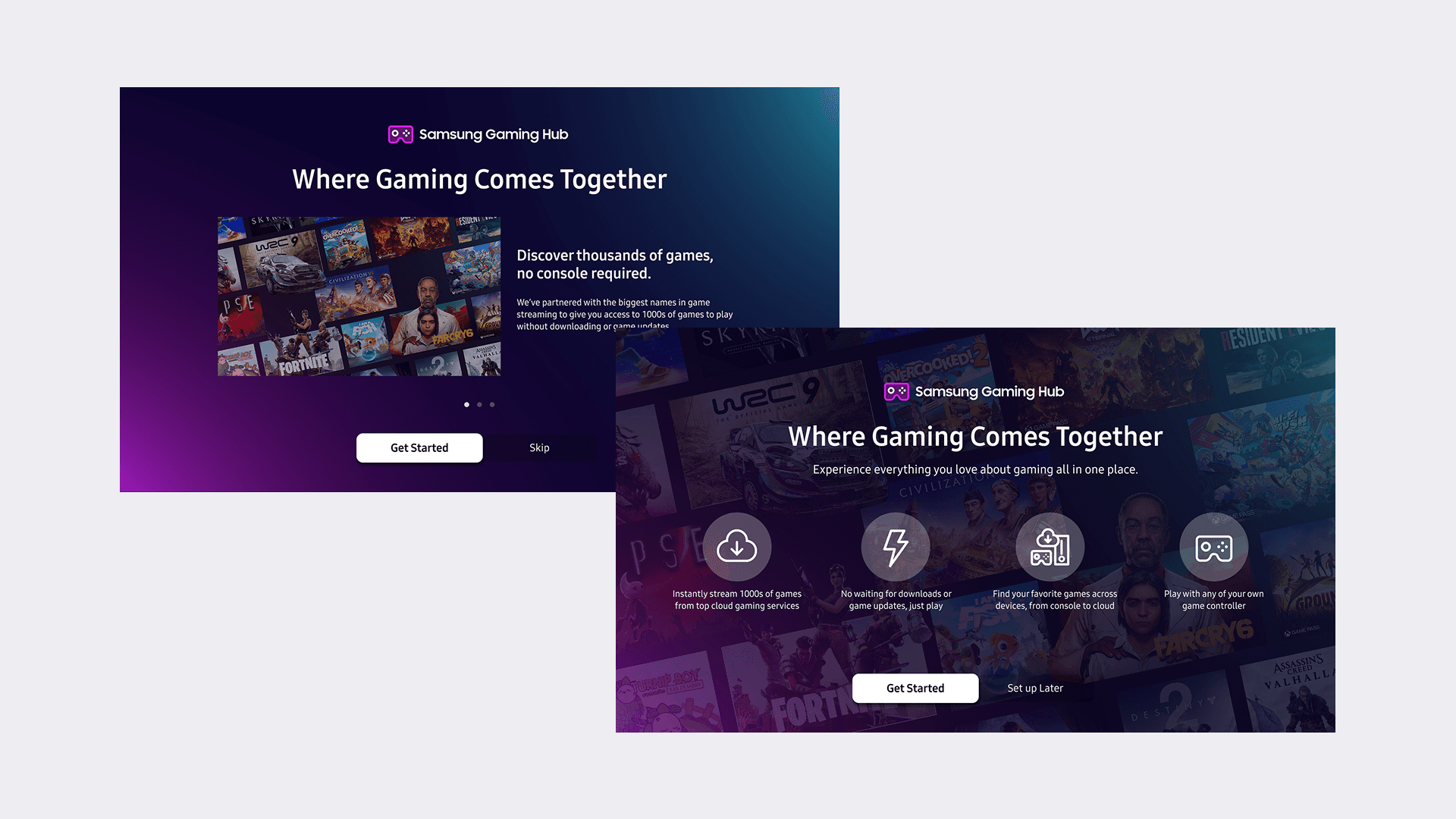Samsung Gaming Hub · First Time Use Onboarding · Shipped to Production